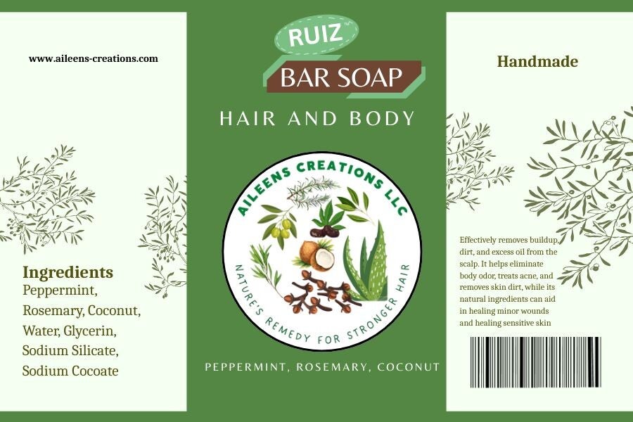 RUIZ Hair and Body Soap Bar (Peppermint, Rosemary, Coconut)